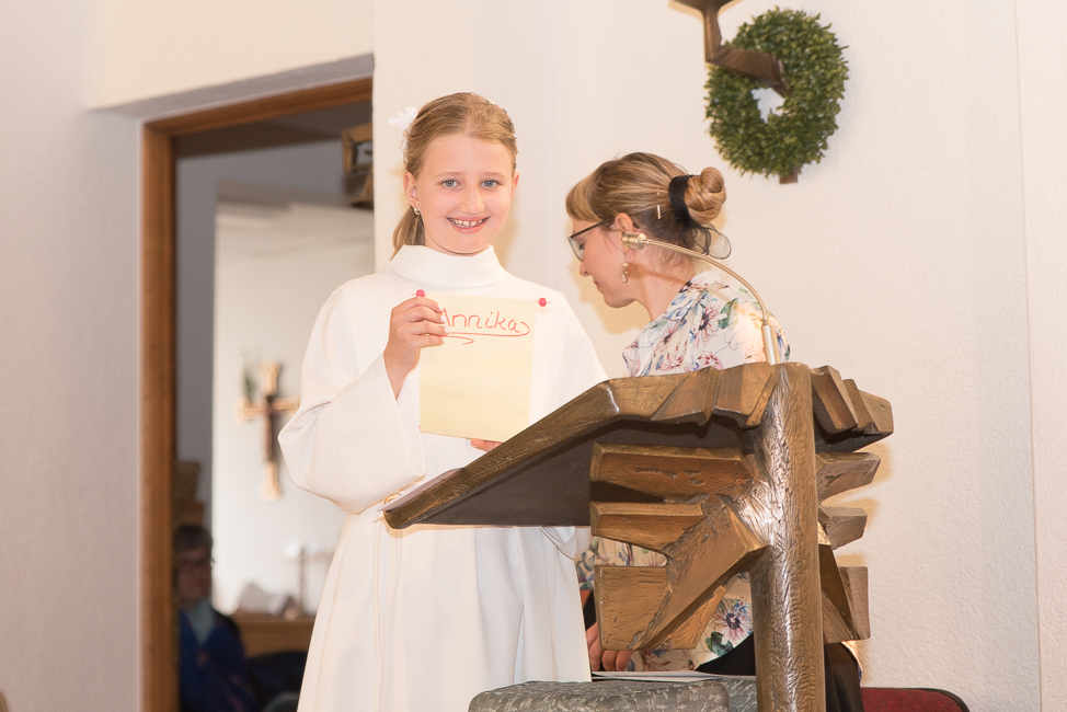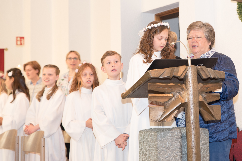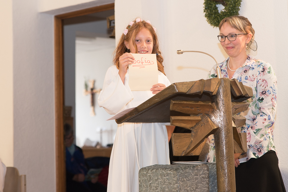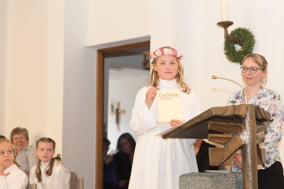 Die Kommunion empfingen Gabriel Elias Ballé, Josef Friedrich Becker, Anastasia Broccio, Julian Burger, Lea Corobae, Vincent Deußer, Samuele Gionfalo, Sofia Groening, Emilia Chiara Heiland, Johanna Jostock, Carlotta Nele Kaffenberger, Tamara Keil, Celine Keuerleber, Annika Kristin Koster, Lenija Kovacevic, Melina Mandaglio, Rania Beate Rautenberg, Emilio Dario Soeder und Nina Sophie Thomys.